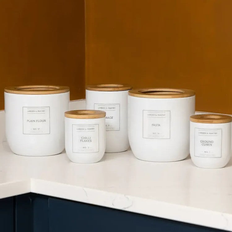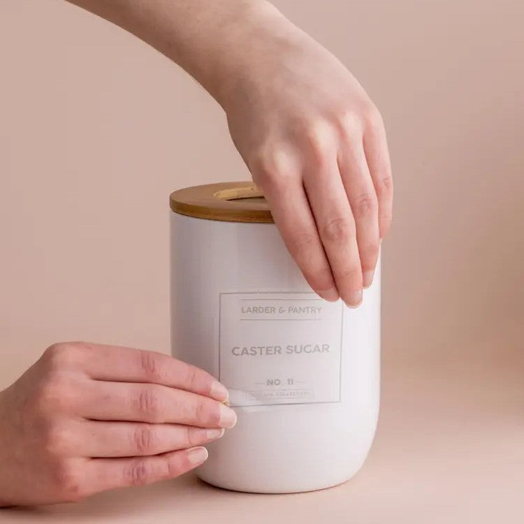 This Typhoon Storage Canister in white combines apothecary style charm with practical design, featuring a convenient viewing window in the lid. Made from durable carbon steel, it's lightweight and easy to maintain, with a bamboo lid and silicone airtight seal to keep contents fresh. This canister also includes 12 reusable cling labels to identify what's inside. Perfect for snacks, dry baking ingredients and coffee station essentials.
