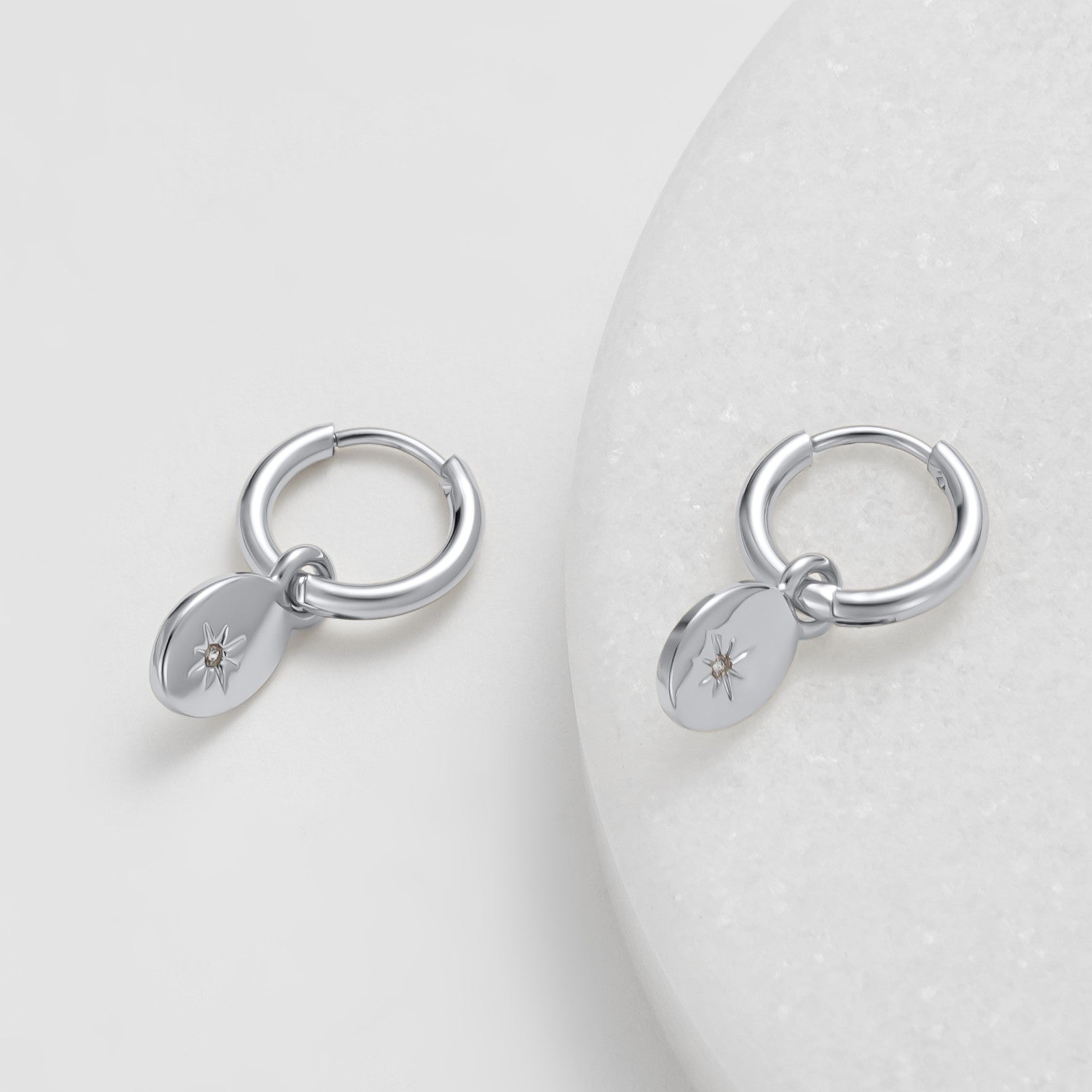 Meet the Nala Huggie — a timeless piece designed for effortless versatility. Crafted from a solid brass base and finished in high-polish 18k gold plated, this refined hoop features a delicate oval charm engraved with a subtle starburst and set with a single sparkling crystal. The charm can be removed, allowing you to wear the Nala as a classic, minimalist hoop or with the drop for a touch of celestial detail. Elegant yet understated, it’s the perfect piece to take you from everyday wear to evening style with ease.
