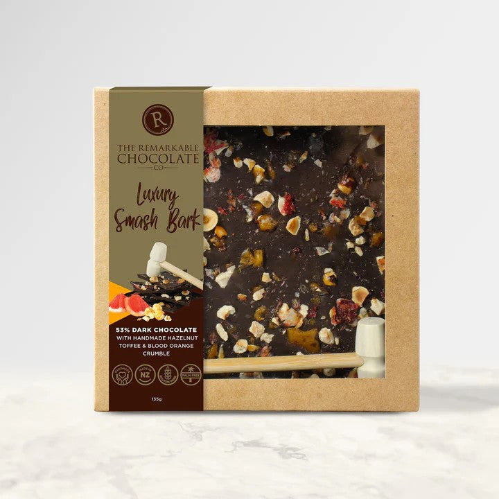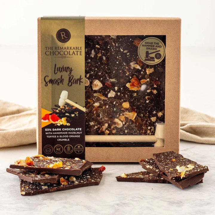 Our Indulgent Hazelnut Brittle & Orange Smash Bark is a fun way to celebrate with friends and family. Simply grab the hammer, smash the block into bark and enjoy!